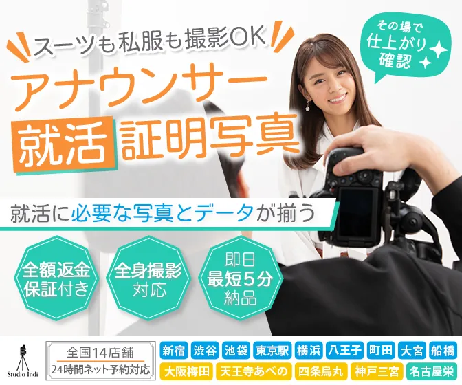 アナウンサーの就活ES写真といえば「スタジオインディ」はじめに